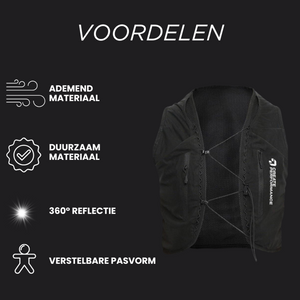 - 360° Reflectie: Het vest is voorzien van reflecterende strips die je volledig zichtbaar maken vanuit elke hoek. Ideaal voor training in het donker of bij slecht weer.